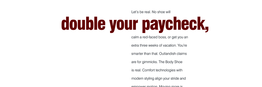 A footwear-industry fad led to a number of companies manufacturing shoes that were purported to enhance the fitness of those wearing them. Hush Puppies was not going to join the fad, but wanted to address the fitness benefits of their own classic styles.